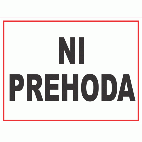Pravilnika o varnostnih znakih oz. standarda SIST 1013. Znak za ni prehoda lahko naročite kot nalepko, tablo PVC ali