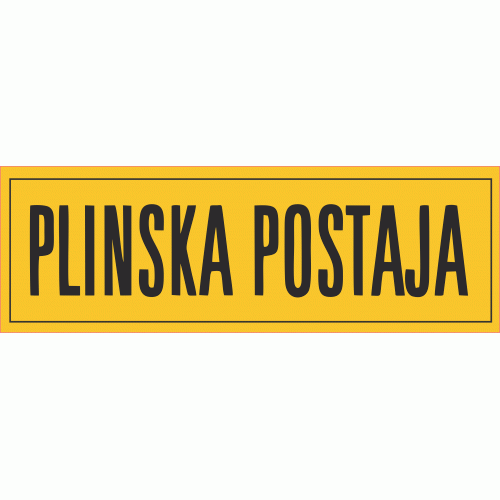 Varnostni/opozorilni znak/nalepka Plinska postaja je izdelana skladno z zahtevami Pravilnika o varnostnih znakih oz. standarda SIST 1013. Znak za plinsko postajo lahko naročite kot nalepko, tablo PVC ali ALU.