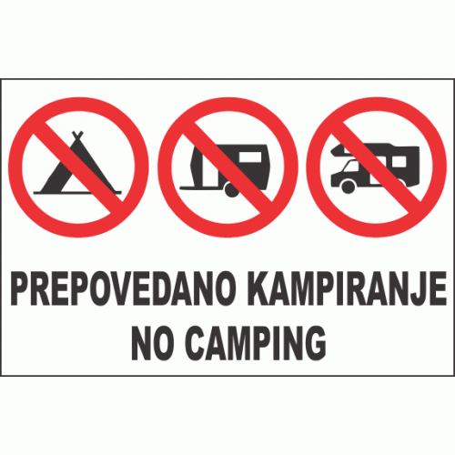 znak/nalepka Prepovedano kampiranje - No camping je izdelana skladno z zahtevami