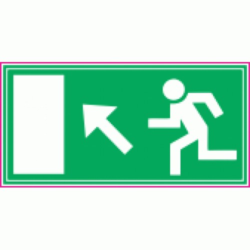 Pravilnika o varnostnih znakih oz. standarda SIST 1013. Znak za Smer rešitve - levo gor lahko naročite kot nalepko, tablo PVC ali