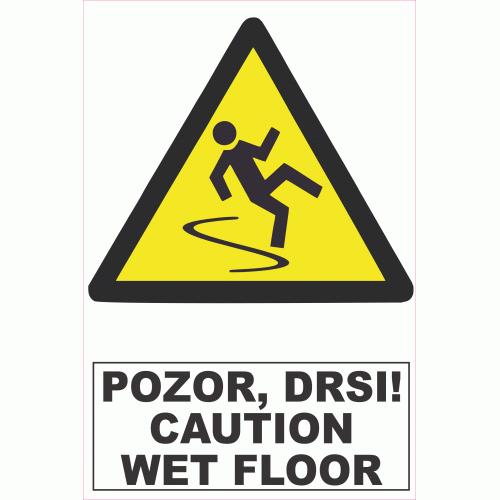Pravilnika o varnostnih znakih oz. standarda SIST 1013. Znak za Pozor, drsi! caution wet floor naročite kot nalepko, tablo PVC ali
