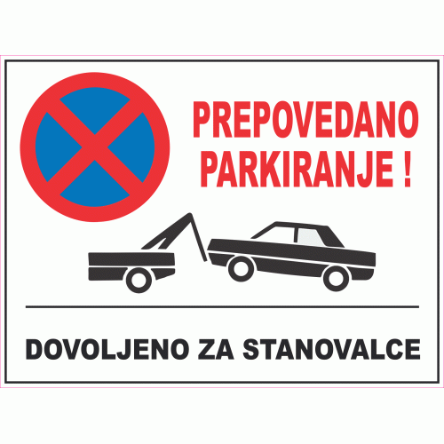 Pravilnika o varnostnih znakih oz. standarda SIST 1013. Znak za Prepovedano parkiranje, dovoljeno za stanovalce lahko naročite kot nalepko, tablo PVC ali