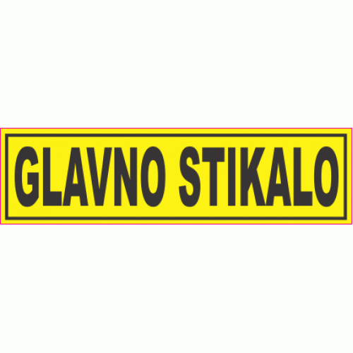 Pravilnika o varnostnih znakih oz. standarda SIST 1013. Znak za glavno stikalo lahko naročite kot nalepko, tablo PVC ali