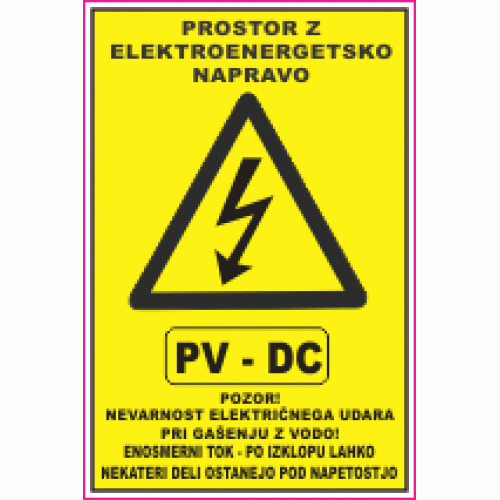 Nalepka je namenjena označevanju kanalov v stavbi, v kateri so kabli enosmernega toka. Take oznake se namestijo na vsakih 3 do 5 m.