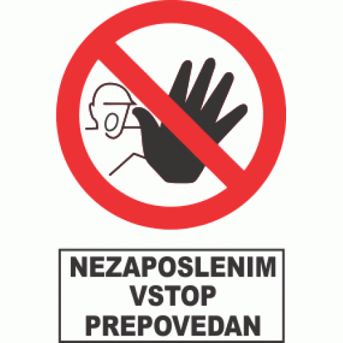 Pravilnika o varnostnih znakih oz. standarda SIST 1013. Znak za Nezaposlenim vstop prepovedano lahko naročite kot nalepko, tablo PVC ali