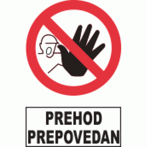 Pravilnika o varnostnih znakih oz. standarda SIST 1013. Znak za Prehod prepovedan lahko naročite kot nalepko, tablo PVC ali