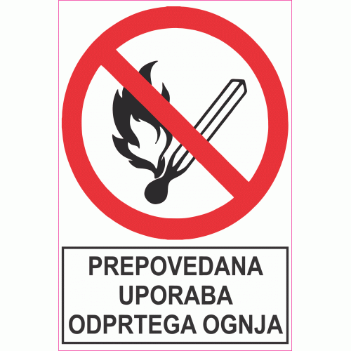 Pravilnika o varnostnih znakih oz. standarda SIST 1013. Znak za Prepovedana uporaba odprtega ognja lahko naročite kot nalepko, tablo PVC ali