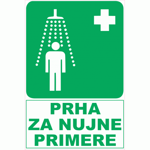 Pravilnika o varnostnih znakih oz. standarda SIST 1013. Znak za prho za nujne primere lahko naročite kot nalepko, tablo PVC ali