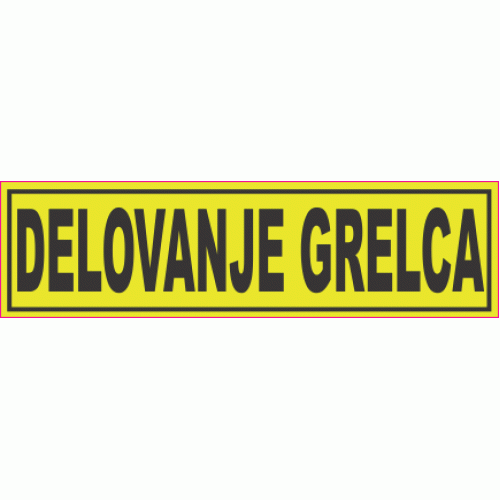Pravilnika o varnostnih znakih oz. standarda SIST 1013. Znak za delovanje grelca lahko naročite kot nalepko, tablo PVC ali