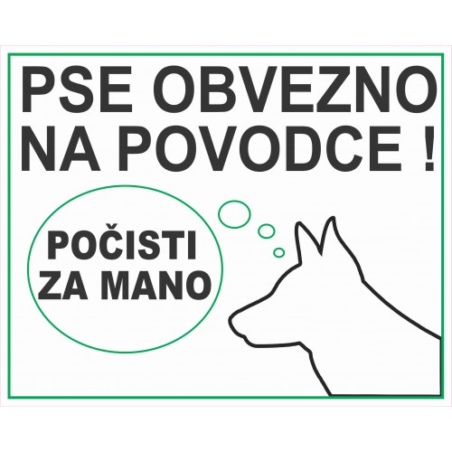 Pravilnika o varnostnih znakih oz. standarda SIST 1013. Znak za Pse obvezno na povodce lahko naročite kot nalepko, tablo PVC ali